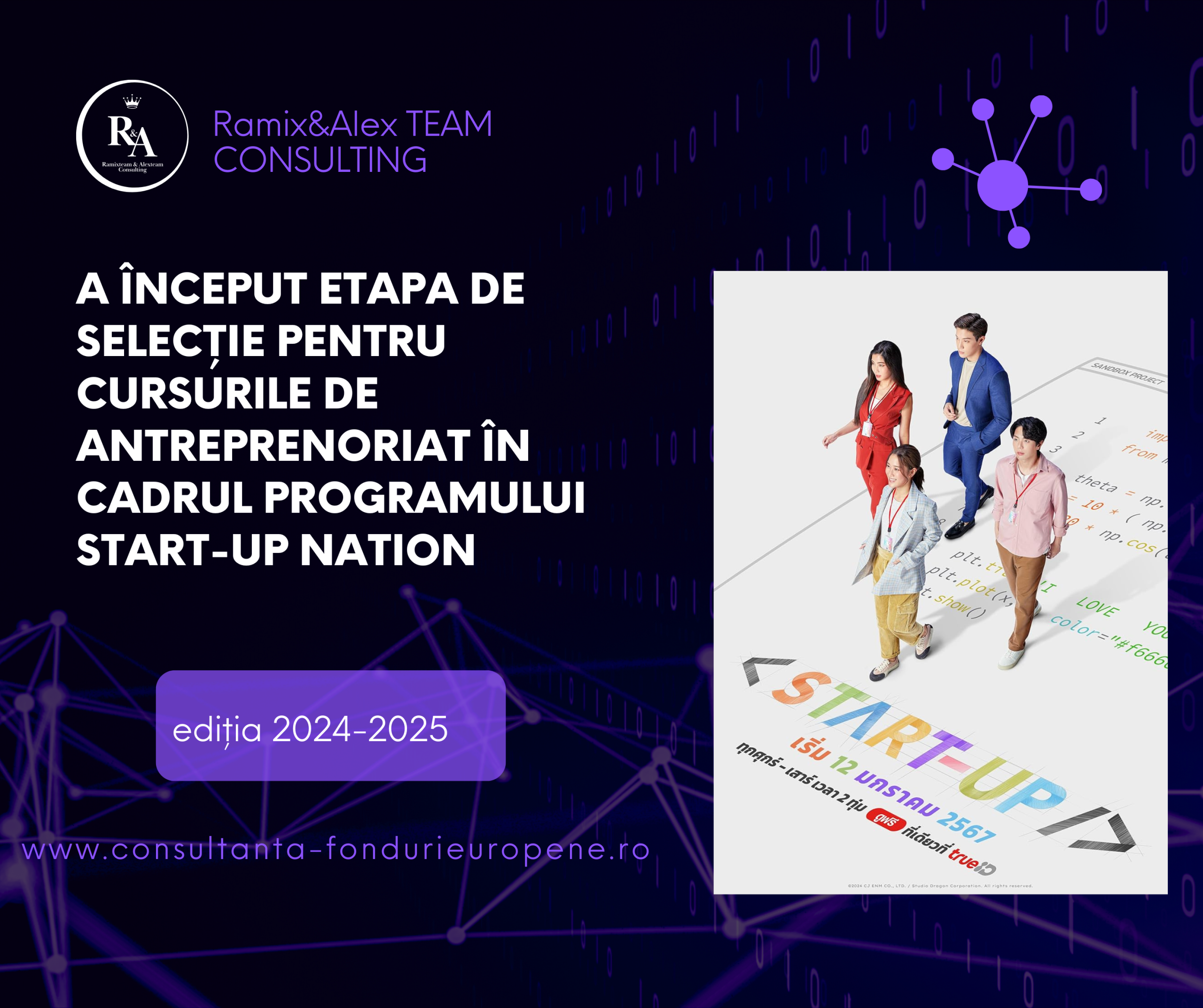 • A început etapa de selecție pentru cursurile de antreprenoriat în cadrul Programului Start-up Nation, ediția 2024-2025