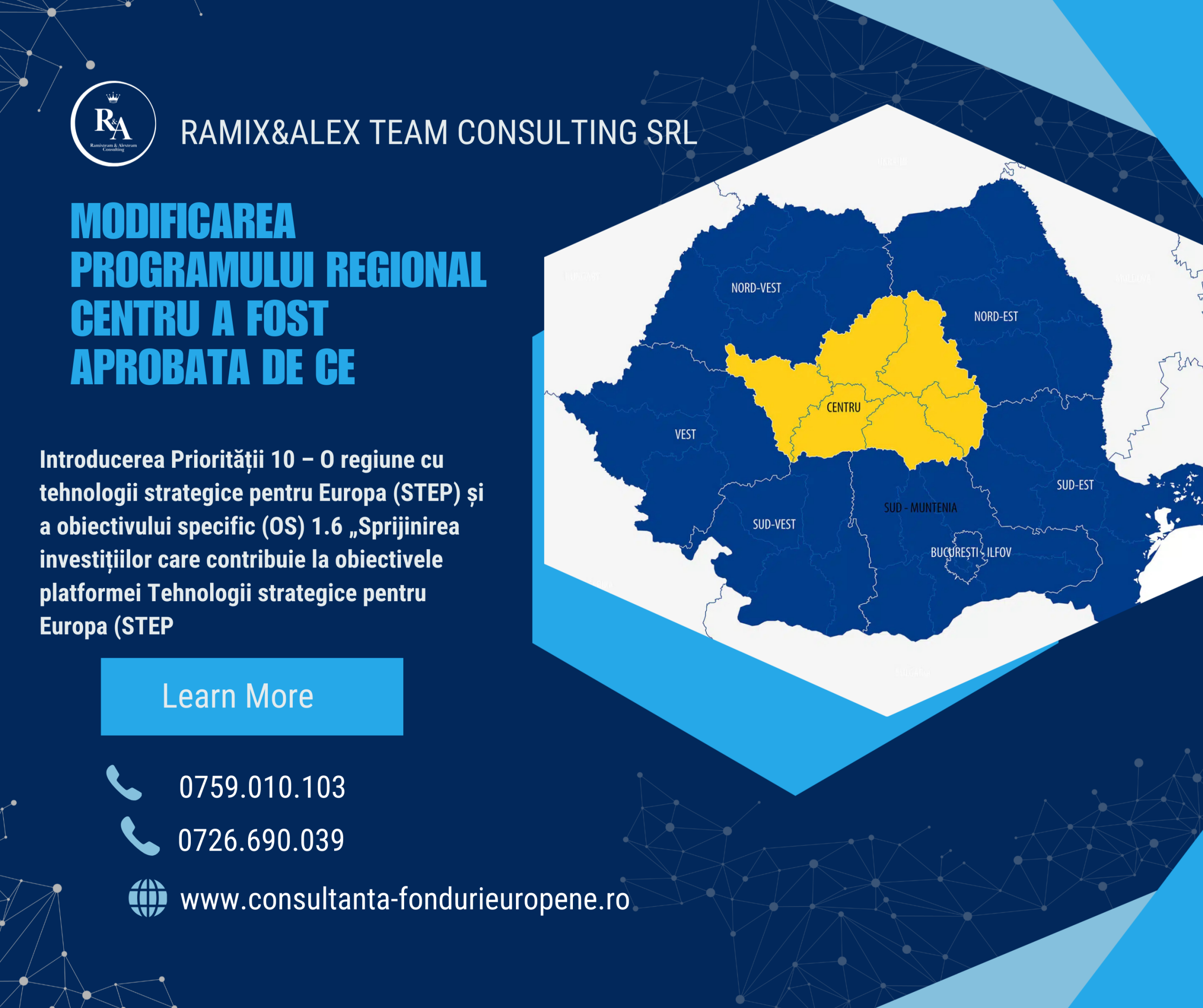 Programul „Regiunea Centru” modificat și Decizia CE de aprobare nr. 5624/06.08.2025 pot fi consultate