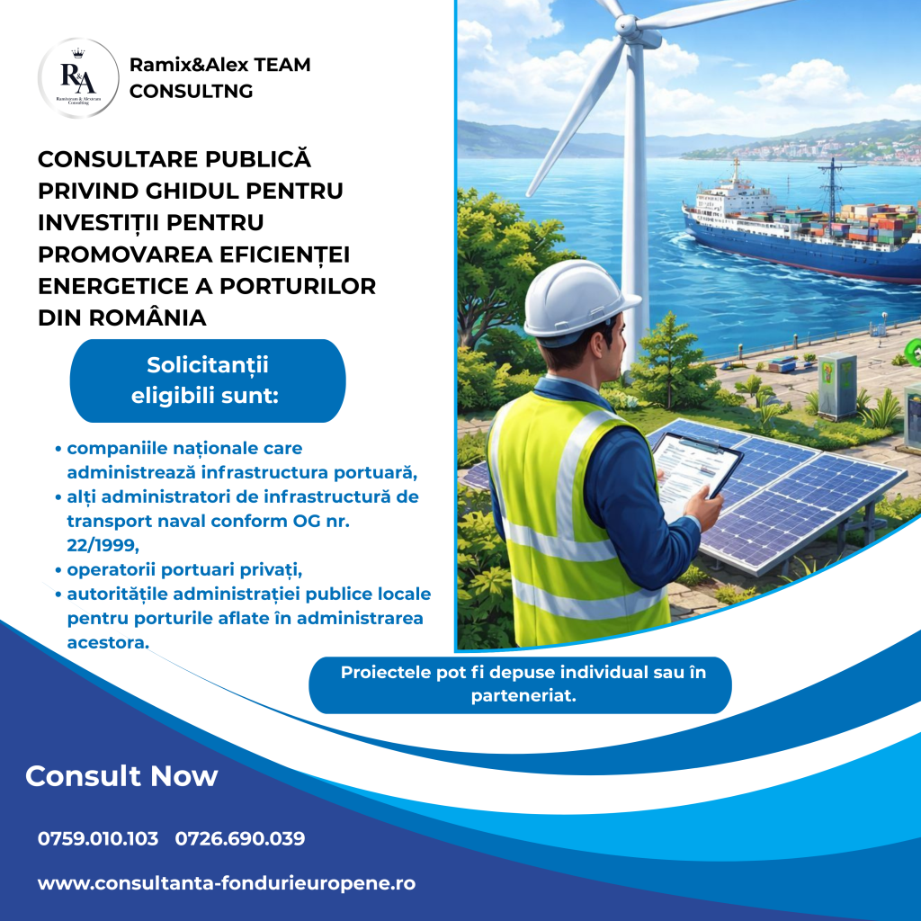 FM: Consultare publică privind ghidul pentru investiții pentru promovarea eficienței energetice a porturilor din România